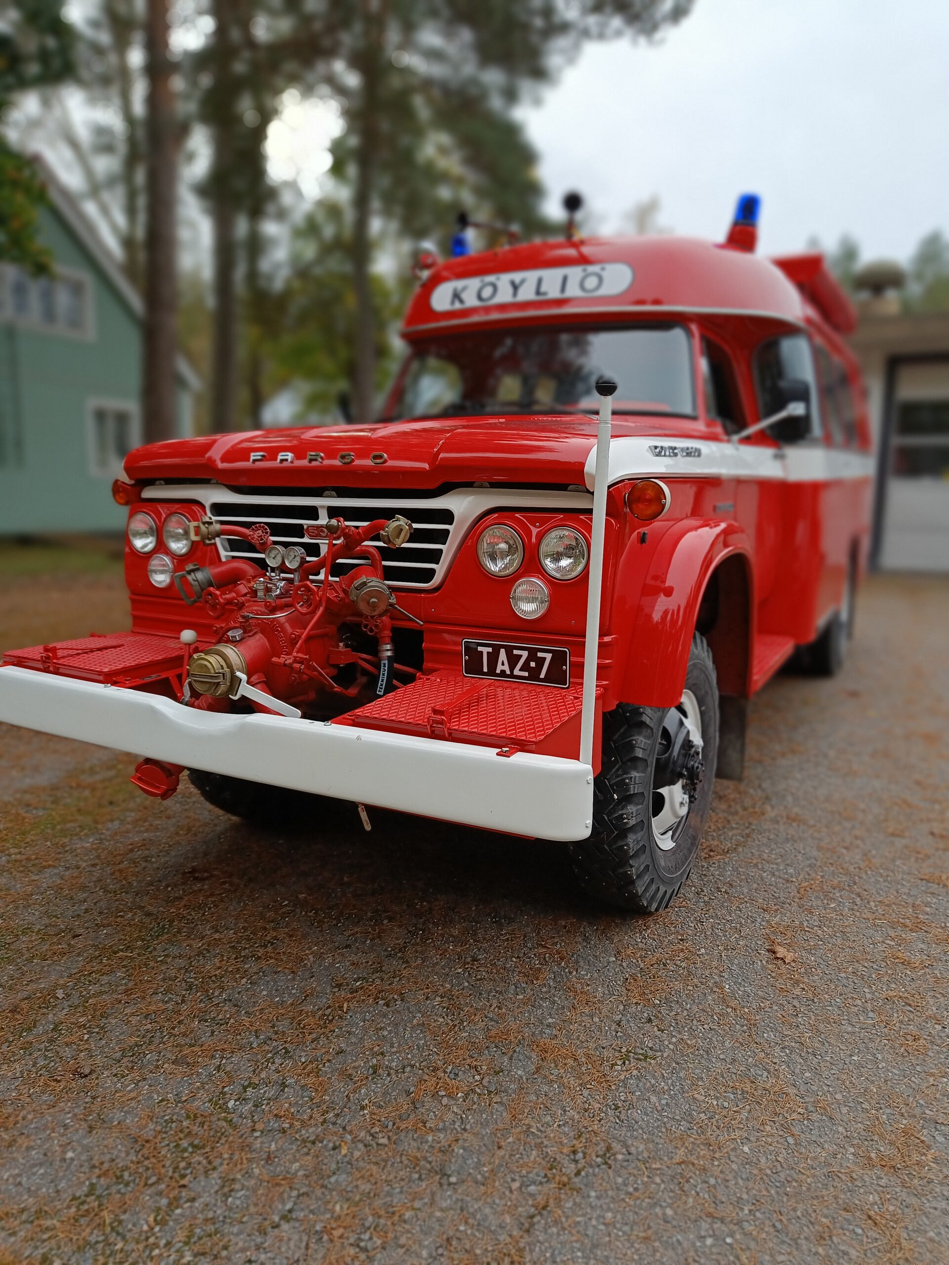 Köyliön Läntisen VPK:n ensimmäiseksi paloautoksi hankittiin vuonna 1962 aito jenkki, Fargo W500. Chryslerin valmistama Fargo-alusta ja Kiitokorin päälirakenne muodostivat 1960-luvulla tehokkaan kokonaisuuden.